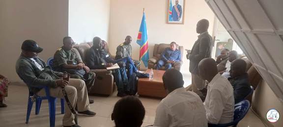 Cette délégation s’est dirigée directement auprès du gouverneur ad intérim Son Excellence Jorge KASONGO Ministre Provincial de la justice et droits humains pour les civilités.